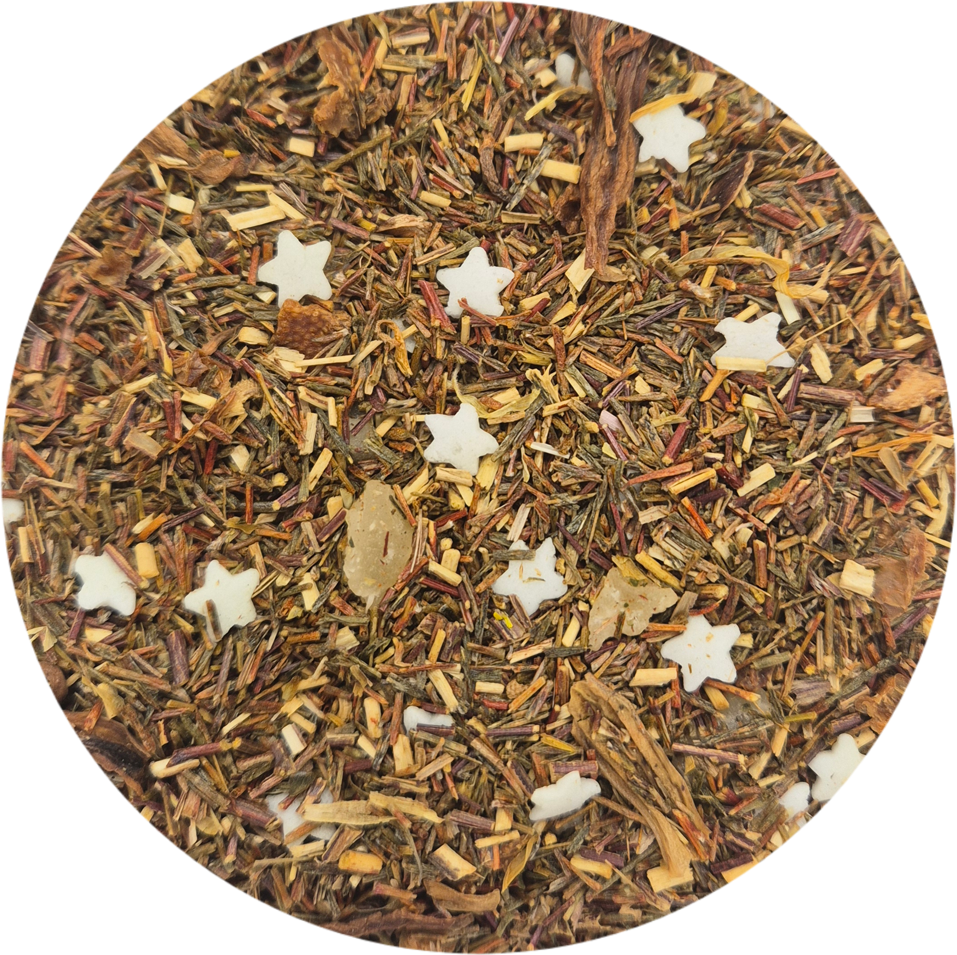 Ingrédients : Rooibos vert, Étoiles en sucre (sucre, farine de riz, huiles et graisses végétales (colza), fécule de pomme de terre, arôme) (10%), hibiscus blanc, ananas (ananas, sucre), écorces de citron, arôme, fleurs de souci, Stevia.
